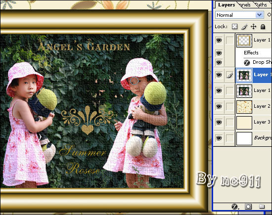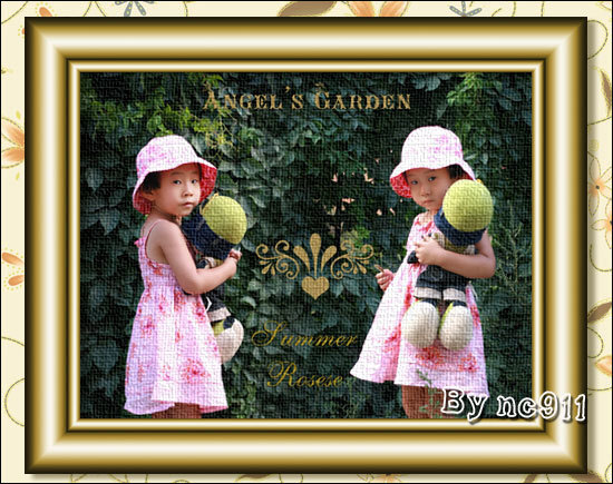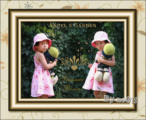 晚上来单位上班,闲来无事,翻硬盘里的照片,看到这个两年前的给游游做的照片,想起写这个教程。比较简单,高手飘过。当时是给我出片的朋友处说能做油画布打印照片,于是我找来两张我给游游在一片挂满绿叶的栅栏前拍的照片,合成了一张,颜色比较凝重,适合作油画的效果。当时做的这个效果图。(00.先看看成品效果