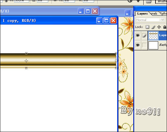 07.把小窄木条放到理想的位置把两个木条图层拼合成一个图层.就是油画框的一个边了.当然这个油画框大家尽可以发挥自己的想象力和技术做得更复杂更美丽.