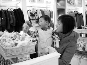 一位妈妈在北京好孩子母婴关爱用品专卖店为女儿挑选商品。