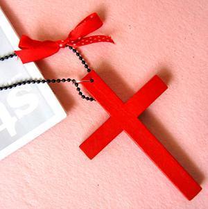 实拍~热卖木制红色蝴蝶结十字架项链毛衣链2.99元