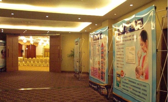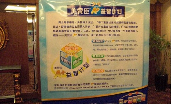 走到了2楼宴会厅的门口,先看见的是我们主办方美赞臣奶粉品牌的广告宣传,4倍DHA这个大家电视上都熟悉了吧。