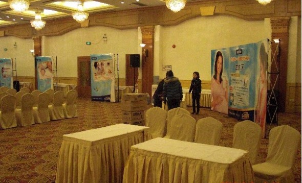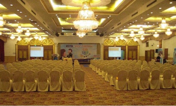 大厅面积有几百平方,据主办方说可以容纳500个人那,而且是很少见的没有柱子的大会场,这样比较安全。