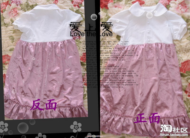 白加粉色连衣裙,穿过1次,上面白色是棉的,有点小泡泡袖,下面的好像是绸缎料子的,我怕热,嫌上面纽扣的热。所以就穿了一次没再穿。现48转了。