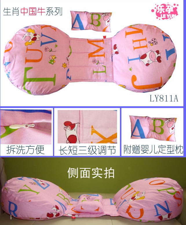 特点:外套为高支纯棉布,可拆洗、钮扣调解长短(三个钮扣两排扣眼)、内胆为棉布、环保无胶棉填充、附赠婴儿定型枕