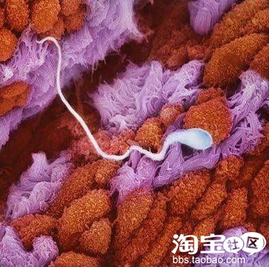 受孕一个精子游向输卵管黏液膜褶内的一个卵子。