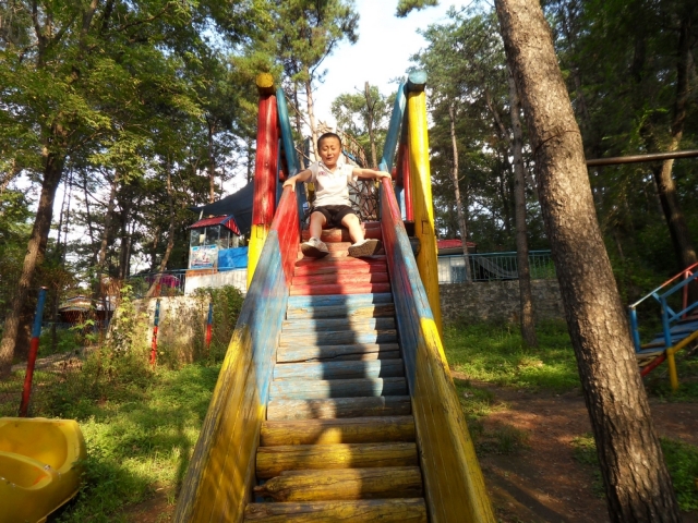 儿子对公园里的一切都极有兴趣,各种娱乐设施都要玩一玩,我也高兴的和儿子一起玩。