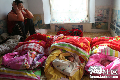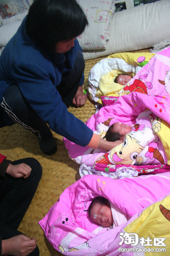 2010年1月3日,青岛,陶华江的婶婶看着三胞胎犯愁。