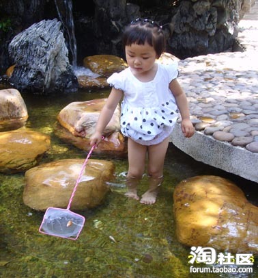 爸爸最疼我了,带我去宝墨园玩抓鱼,开心极了,你看我还抓到一条呢!