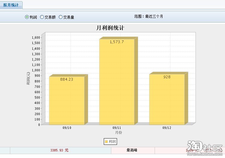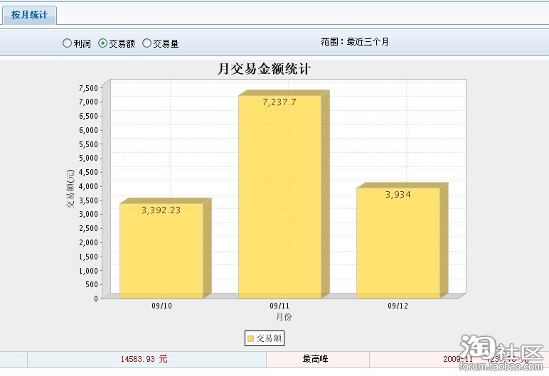 这份是我从09年10月份开始到2009年12月12日的交易额哦,虽然比起那些大卖家来是只是个小毛毛,可是对于我来说是个真不错的成绩哦,因为每个月都在进步,每个月的利润都有所提高哦,09年12月份的交易额比较低是因为只有前10天的上去哦,若是按照整月的来算的话是三个月中最高的一个哦。