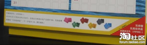 昨天经过乐高专卖店看到门口贴的宣传画,貌似又在做活动。走近一看,是一个买赠活动,从2月1日起,购满458元就能免费得到一个限量版的乐高积木外形的储物盒。盒子看上去蛮可爱的,有点眼熟,总觉得在哪见过。回家看到之前换购的台历才发现,台历上也有这个活动的优惠卷,不过用优惠卷只需蛮388就能换到储物盒了!