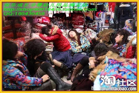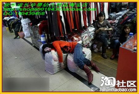 这个时候市场内人最少,都是些零售生意。姐妹们有的在想心事,有的读书看报,有的玩手机游戏发短信,有的对着镜子一套一套地试衣服,更多的女孩则在衣服堆里蒙头睡觉