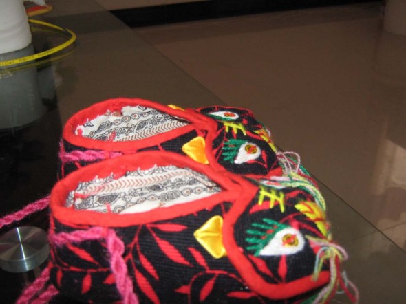这项手艺已经在慢慢失传了,只有一些上了年纪的老人才会做。于是我求70多岁的奶奶给我的宝宝做了一双虎头鞋 主要是希望宝宝能健康成长!