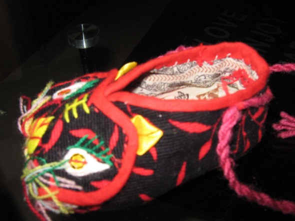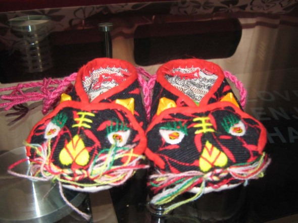 虎头鞋它既有实用价值,也有观赏价值,同时它又是一种吉祥物,人们赋予它驱鬼辟邪的功能。