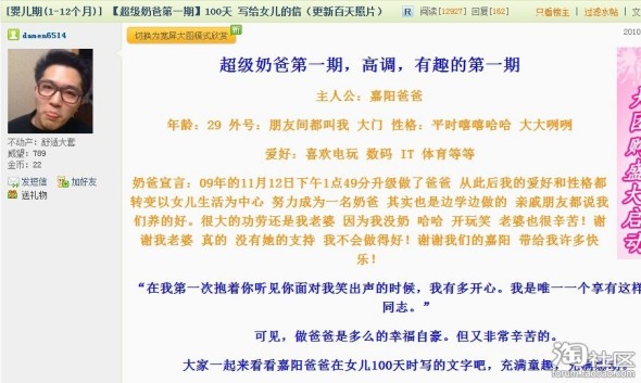 事情是这样的 女儿100天的时候 我老公在19楼发一篇写给女儿的信 被版主选中上了首页 没想到还采访了他 今天上了报纸 很开心!!