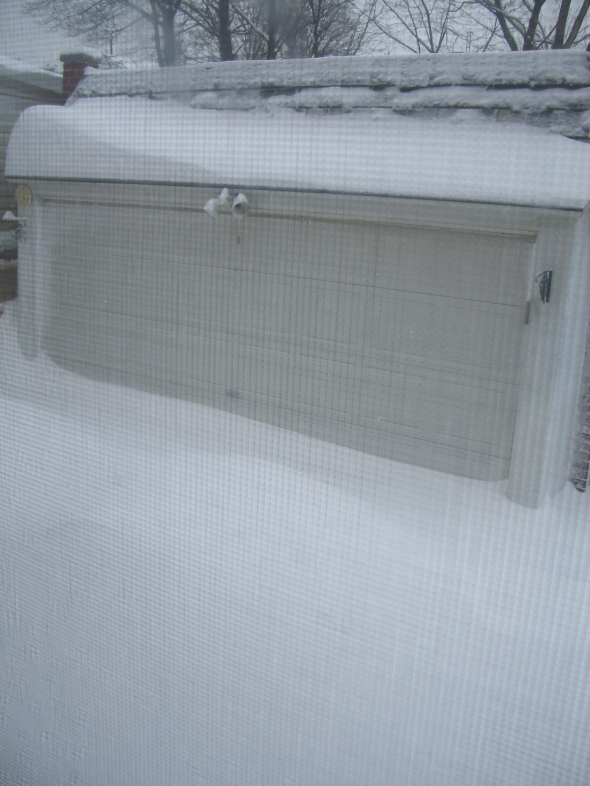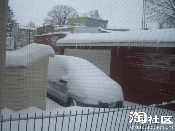 厚厚的积雪把后院车库的门都给堵住了,这两张都是在屋内隔着玻璃往外照的 有点模糊