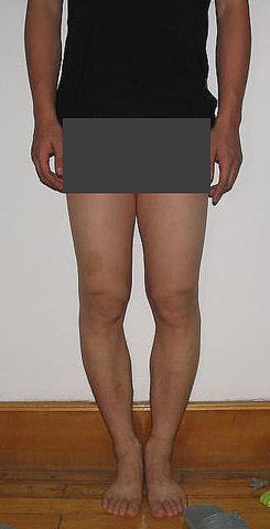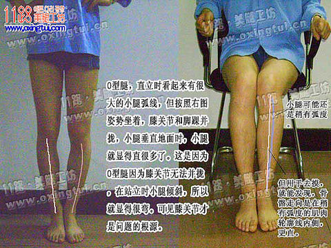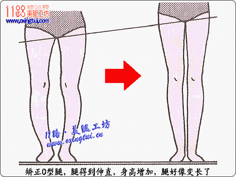 我的腿就跟左边这个几乎一摸一样,属于中度偏轻的O型腿,膝外翻还是内翻来着。小时候要是仔细去矫正的话就是长长直直的美腿了,哎。不要看图片上面写的网址,假的。要去医院看医生。成年人就算了,不严重的不要手术,手术也没啥大用处,只是好看了。手术费得两三万。还是小时候矫正的好。