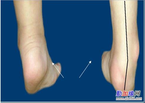 力线不齐,走路的时候脚丫就是外翻或者内翻,要看你的膝盖的力线是膝内翻还是膝外翻