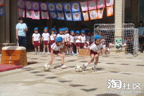 日本幼儿园到了年中组,开始上每周一次的jumping课,相当于我们的体育和形体课;到了年长组,就有了足球大会,孩子们成天不是练习打鼓,就是练习足球,那是真踢啊,而且不停有幼儿园之间的比赛,田田的身上青一块、紫一块的,但是体力和勇气都练出了。