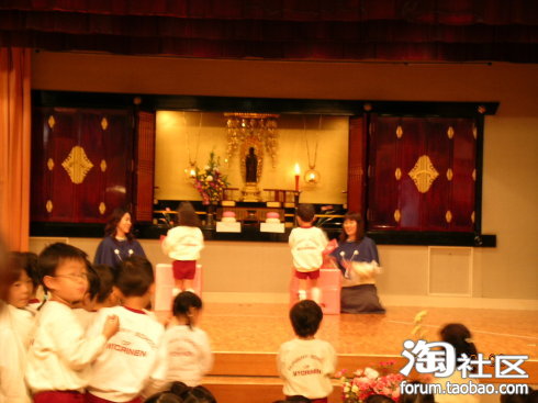 京都大概是日本寺庙最多的城市,整个城市有一种晨钟暮鼓的氛围,田田的幼儿园每个月都要到寺庙里受一次教诲,园里最重要的节日一定要拜佛,佛诞日、涅pan日都有活动,最近孩子们马上要毕业了,昨天就去了西本愿寺向佛许了愿,田田还代表班级给佛献了花。我问许了什么愿,她说:永远信任佛,永远对别人怀有感谢的心,永远认真倾听别人的话。