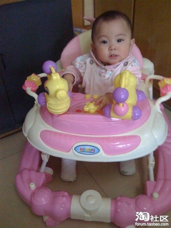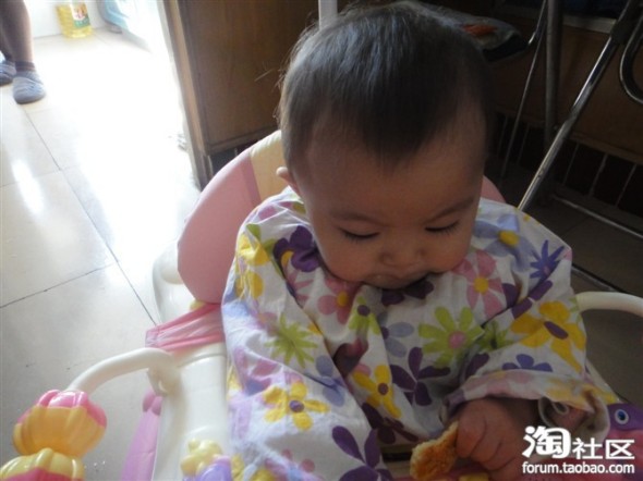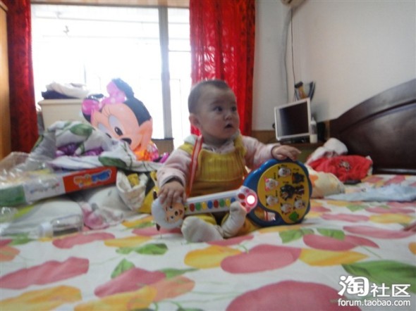 PS:哈哈,其实别看小家伙总是笑,脾气也可大呢,有次她做在小车里吃饼干,我就把饼干抢了,好家伙,气的她直跺脚,她奶奶赶紧又给拿了个哄哄这才好了,上次2月2去剪头发,人家理发师的推子可能夹了下她的头发,哎呦喂,气的哭的连气儿都喘不上来了,吓的她爸爸直埋怨我们,我们总说现在才9个多月脾气就这么大,以后长大了可咋整哦,可得要挨揍呢,呵呵,以上就是我家小宝贝的生活照,希望各位淘友会喜欢这个可爱的孩子