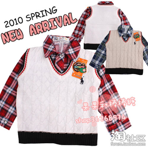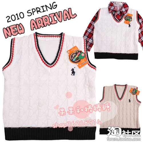 织背心+格子衬POLO针织马甲经典卡通裙衫