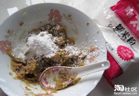 加入适量面粉和糯米粉合成团。