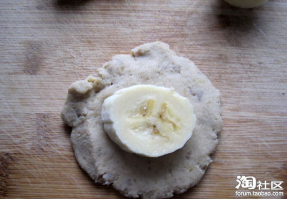 完成后放锅里煎。剩下了几块香蕉我一起放锅里煎啦