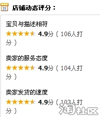 就在刚刚,我的店铺动态里的服务态度变成4.9分了~~55555,虽然早就有心理准备了,可真的来的时候,心里还是隐隐有点痛。