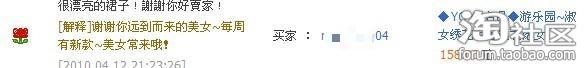 一直没这么静下心来写过一篇贴子,因为本人文采不是很好,是那种言语多过写作的~。我的网店是从2008年开的。一开始是怀孕在家,闲来无事。刚好我一朋友的老公在一个某运动品牌公司里工作。与我和朋友因为觉得闲着也是闲着,就各自开了个网店。从一无所知到现在的两钻的女装店。中间也陆陆续续的停了一段时间。我朋友不搞了。现在只有我一个在坚持着开到现在,有时觉得网店开久了就成了一种习惯和期待,每天大部分时间都交给了网络。不过最近生意不怎么好,一直不温不火。说来也奇怪。晚上大概九点多钟的时候,我旺旺突然响了,我老公一看,是个没信用的。随口来了句。估计是看看的那种。没报多大希望。(我老公不太支持我做这淘宝,总觉得我在浪费时间)我可不依了,不管怎么样,买家上门了,就代表希望来了,就要热情的为买家服务,不管成功与否尽心尽力了,买家总能感觉到,接下来美妙的事情就发生了,不说了,直接上图