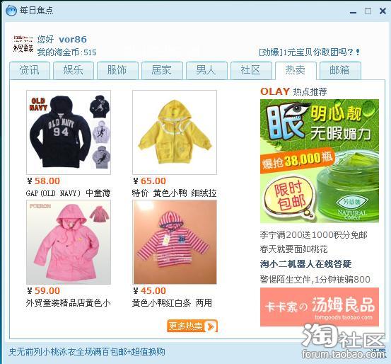 晚上,重新登录旺旺,看到一个画面,突然好激动呀!!我们店铺的衣服成了淘宝的热卖,好激动呀!!!好兴奋,跟大家分享下: