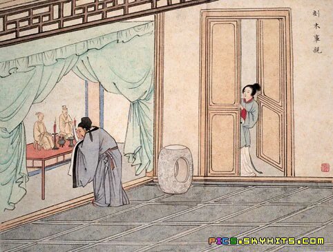 丁兰,相传为东汉时期河内(今河南黄河北)人,幼年父母双亡,他经常思念父母的养育之恩,于是用木头刻成双亲的雕像,事之如生,凡事均和木像商议,每日三餐敬过双亲后自己方才食用,出门前一定禀告,回家后一定面见,从不懈怠。久之,其妻对木像便不太恭敬了,竟好奇地用针刺木像的手指,而木像的手指居然有血流出。丁兰回家见木像眼中垂泪,问知实情,遂将妻子休弃。