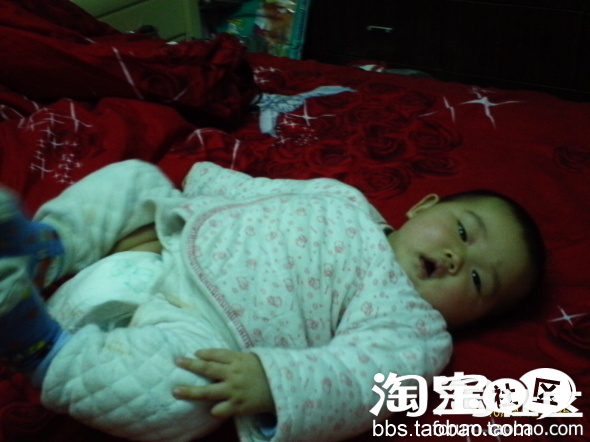 ,今天大约2点多钟的时候,女儿睡在床上,女儿现在已经6个月了,现在天热衣服穿的又少,所以她很爱翻身了,我抱她上床的时放得很外面,我想反正我在旁边她醒的话我总知道,早知道就给她放床中间了,不然宝宝也不会摔疼了