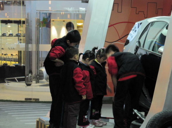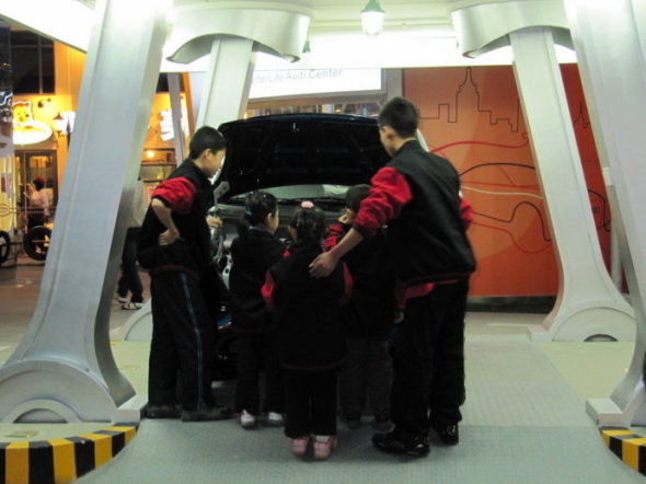 第一个游戏,当个小小汽车修理工,对汽车进行修理、换轮胎。上岗之前要打卡,呵呵~~进行工作登记的,大家都很严肃认真。