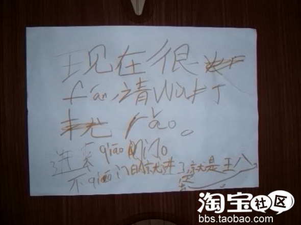 女儿今年上二年级了,成绩属于中等偏上。女儿打上幼儿园就被老师们认定为是一个偏内向一点的孩子。虽然有表现欲望,但是老是害羞,没有信心和勇气来跟老师们打成一片。不过总体说来,不是那种不听话总惹人上火的孩子。唯一一点让人担心的就是有心事也不善于沟通,总是一个人独自生闷气。这不,昨天刚放学回来,出了校门口还高高兴兴的,回到家以后,我在择菜,她自己拿出来书包做作业。突然,我听见她的房间的门砰的一声关掉了,我探出头一看,门是闭着的,我走近一瞧,看到门上粘了一张纸,上面龙飞凤舞的写着:现在很烦,请勿打扰,进来请敲门,不敲门就是王八蛋。我敲门进来,问她怎么了,她跟我指指门上的纸条,说,妈妈你看了么?我说看见了,所以敲门了啊,问她在烦什么,只是说没什么,也问不出个所以然,我就继续干活了,但是我心里感觉很纳闷,孩子在烦什么?平日和我也不是什么话都不说,我们还算是挺谈得拢的,孩子到底是在烦什么?忽然记起来上次过六一儿童节时,孩子回来跟我说,妈妈,你知道为什么某某的家长也去看六一节目了么?因为他们公司给学校捐了钱做奖品,所以,他们被学校请过去的,我问她是听谁说的,孩子告诉我说是那个某某告诉他的,他妈妈就是那个公司的人员。孩子的话语里,明显带着失落。我想,这次是不是又是因为听见了什么事情,或者是经历了什么事情,才让孩子心里有情绪了呢?我不希望孩子能考上名牌大学,但是我希望孩子能有个健康的心理,难道就这么难么?孩子的心思我一直在观察,时刻注意她的心理动向。但是,毕竟我不是心理学家,我做不了那么全面,我多希望孩子不仅能有个健康身体,还有健康的心理。