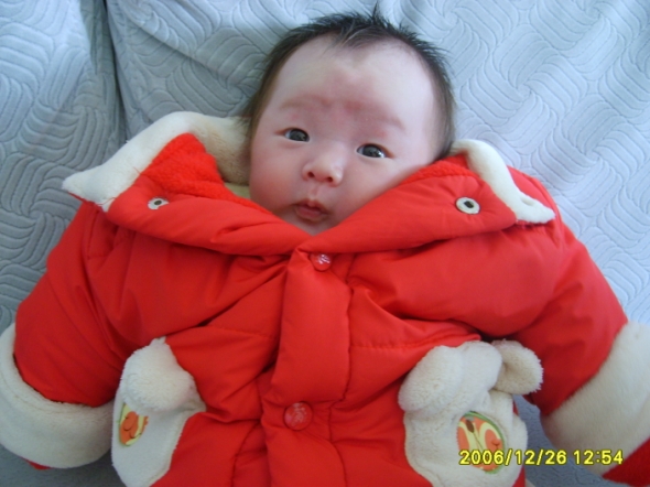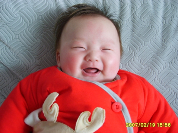 好了,再来张我宝宝现在的相片吧~这是我宝宝满月的~