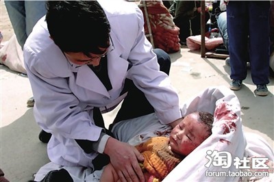 大爱的力量额头淌血的父亲,目光虽惶恐臂弯却坚固( 图片/新华社CFP东方IC)