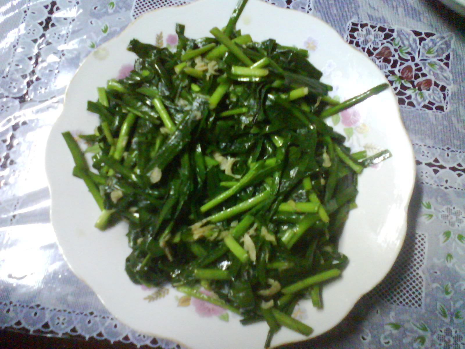 第四道:韭菜炒虾仁,一道很普通的家常菜,绿色食品,小的时候很喜欢吃,现在也一样
