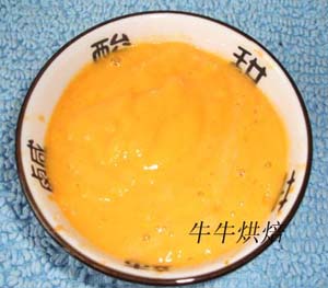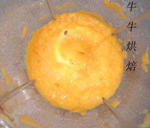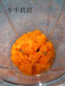 将250g果肉加淡奶油放入搅拌机中搅成果浆;