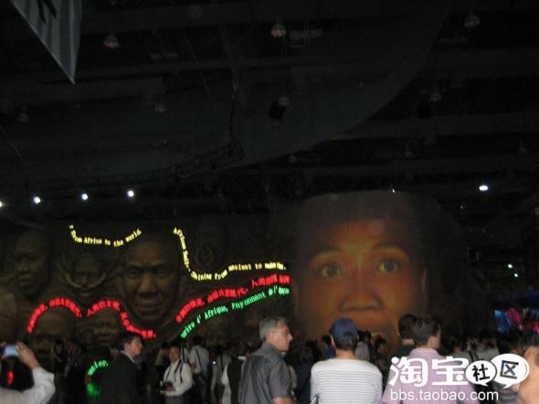 欧洲区差不多了,然后我们又打算转战非洲区,到了非洲区,太多的非洲国家,看到【安哥拉馆】门口没有排队,就进去了,原始的感觉,木雕图腾什么的,不是很大,出来后,看到【非洲联合馆】,哈哈,想想所有非洲国家都有,就进去了,不需要排队,随便看了看,大同小异,有很多手工艺品出售,呵呵,没米,都没买.