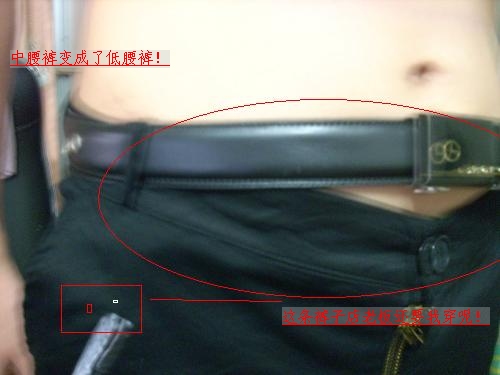 裤子前面两根系皮带位置的扣请大家用模特身上的与我身上穿的这两条裤子对比一下,像我身上这样系车皮带能出去见人吗?是不是你家的裤子只适合模特穿,像我们消费者穿出的就只是我身上穿出的这样子,正常吗? |