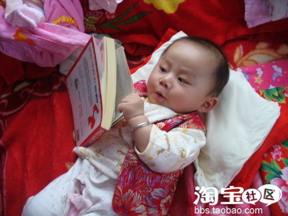 霖霖喜欢看书,霖霖将来要上大学!!!(六个半月)