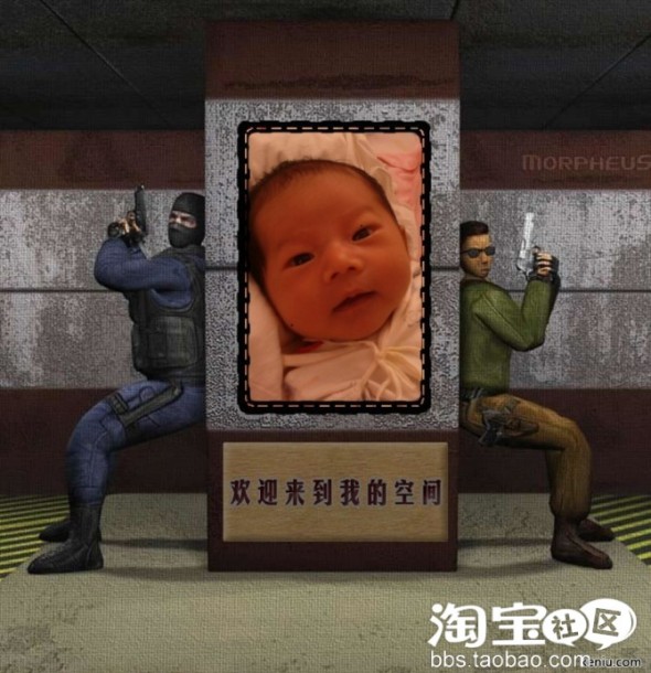 受宝爸爸的影响(宝爸喜欢玩CS)宝宝立志将来也要做反恐精英!!!!(宝宝一个月)