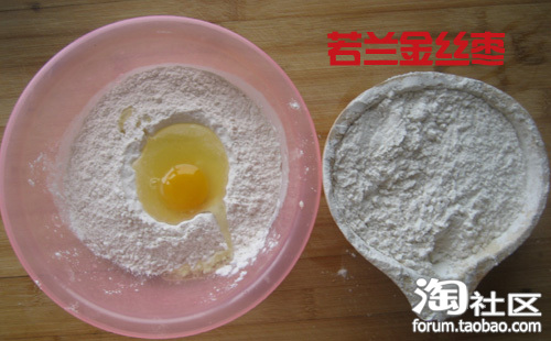 三、面粉中加入一个鸡蛋,适量水,打成稀一点糊糊,加入少量盐,一定要加鸡蛋,炸出来色泽才好看