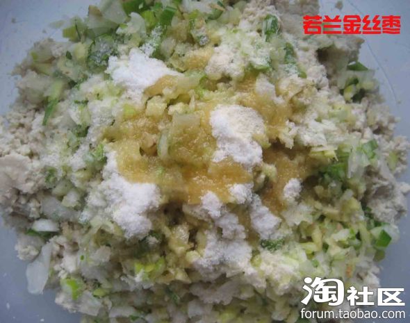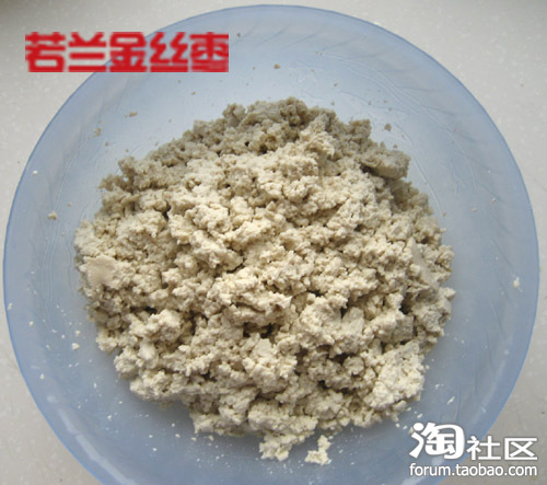 二、把豆腐弄碎,香葱姜切末、加入葱姜末、山药丁、盐、鸡精、香油拌馅,宝宝们吃可加火腿丁或者瘦肉丁啊,营养更丰富