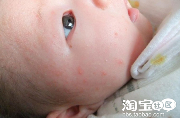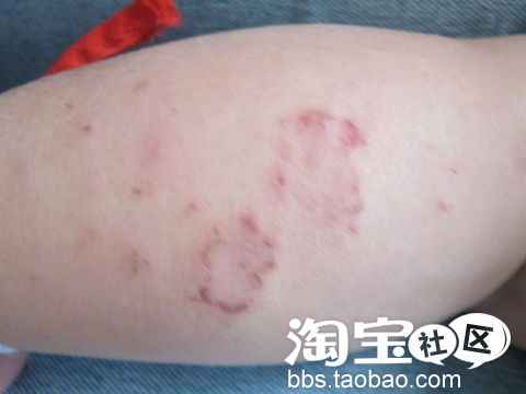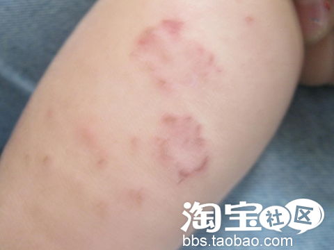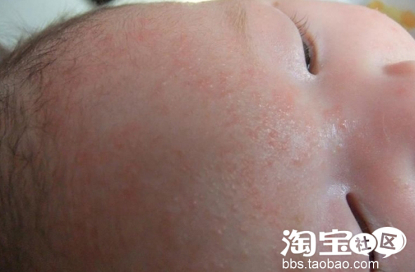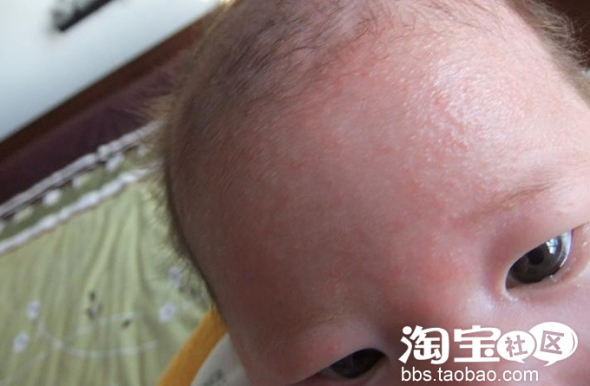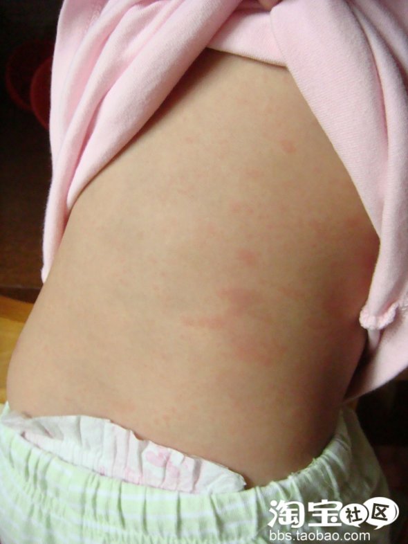 可叹,我太天真了,瞎了眼,在淘宝购买了一床所谓的“特级桑蚕丝”儿童被,我那可怜的宝宝于是成了这样: