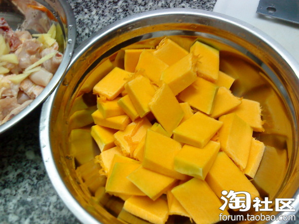 1、把南瓜去皮,切成小块