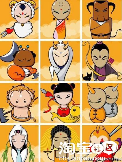 11.水瓶:观音娘娘;12.双鱼:哪吒。