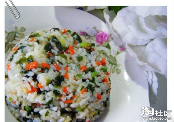 这是隆重推出的营养海藻米饭。此款米饭完全是因为小宝同学不爱吃虾皮不爱吃胡萝卜逼我想出的“狠招”!我全给剁碎了,再加上深海海藻,哈哈,全都吃光光了!因为海藻的鲜味完全盖住了虾皮和胡萝卜的味道,她只看到这两样东西了,但吃的是海藻的鲜味。吃完喝了口豆浆一抹小嘴说:“妈妈,你太黑了!”