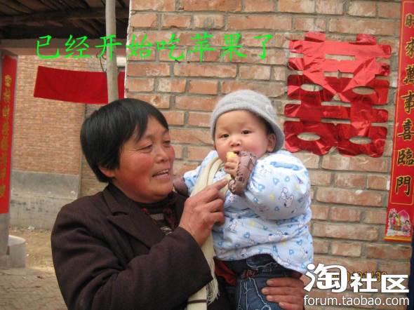 宝宝跟他爷爷在一起,就一个牙已经开始吃苹果了。小家伙,鬼的很,是一个好吃手.....