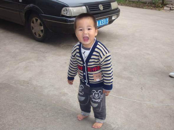 先上张照片,去年11月照的,寒冬腊月我儿子才开始穿鞋袜,给我省了不少鞋子袜子